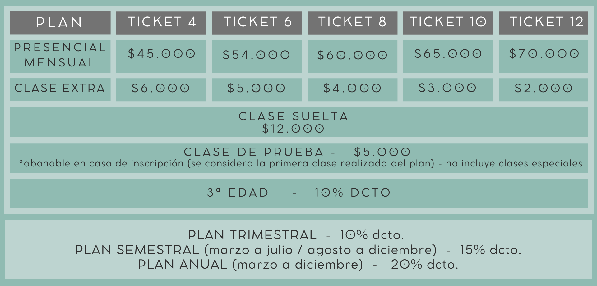 - IMPORTANTE: Las clases deben ser usadas en los periodos antes mencionados. Las clases sobrantes NO podrán pasarse a los meses siguientes. NO hay devoluciones.